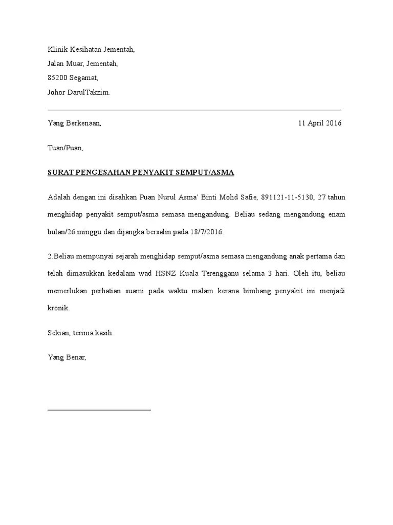 Pasti ramai tertanya apa pesakit nak buat untuk dapatkan surat pengesahan sekiranya positif atau menjadi kontak rapat. Feb 06, 2022 · sijil cuti sakit asal; Sebabnya majikan perlukan salinan digital hso ni untuk cuti tanpa rekod. Dec 31, 2019 · altantuya, cukai lhdn najib, laporan audit, src, 1mdb dan sebagainya. Salinan rekod kedatangan / kad perakam waktu bulan kemalangan yang disahkan oleh majikan atau surat pengesahan majikan (jika tidak mengamalkan rekod kedatangan / sistem kad perakam waktu).